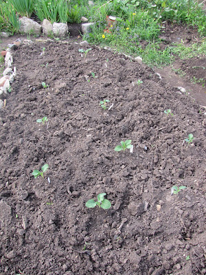 The ground is so hard here that last year we ended up working it a little, but mostly just growing in compost spread on top. This worked wonderfully for a month or so, until the roots hit the hard soil - they plants did miserably after that and we barely got anything at all from it. This year we took a different tact. Stanley did the bulk of the hardest work, turning the soil and loosening it up about a a foot down.